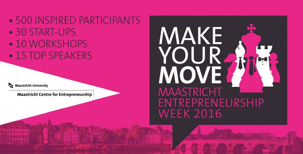 Maastricht is a student city in the South of the Netherlands. You might think, why should it interest you? Because Maastricht Entrepreneurship week will take place on 9-12 May there. The topic is ‘Make your move’. Why is it so? The mission of ME week is to inspire students to become catalysts of change as young entrepreneurs inspired by stories from professionals. They want to show and inspire students that it is the best time in their life to make a strategic career move and start up smart.